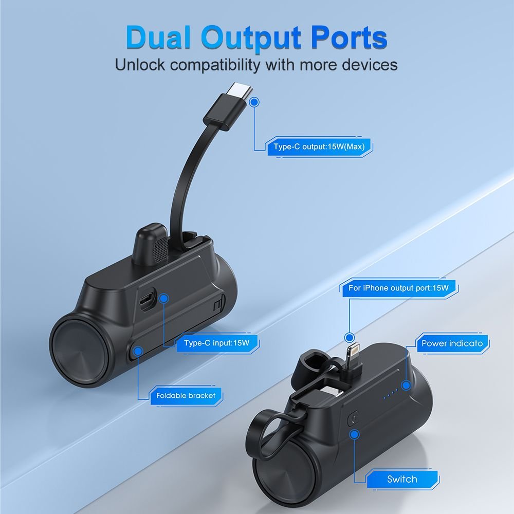 1.Portable Charger with Built in Cables, Portable Charger with Cords Wires Slim 8000mAh Travel Essentials Battery High Speed Power Bank for iPhone