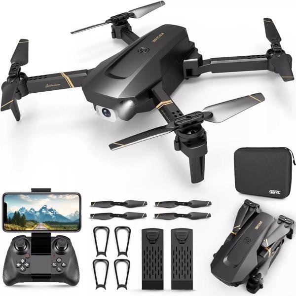 Gravity ModeMore suitable for beginners to control. Actually, due to environmental factors (windy, other frequency interference), the drone will drifts and cannot hover. In the gravity sensor mode, you don't need to control the remote control's joystick all the time to correct the position of the drone. | 3D View ModePut your phone in the VR glasses(Not Included), provides an amazing visual fidelity and outstanding 3D experience. You can enjoy first person view real time live video directly with it. | Triple flight timeCome with 3 modular batteries can support longer flight time, which prolongs the flying time up to 52 minutes and makes it much easier and safer to replace. the drone or control will send the alarm when it at low voltage, gives you a worriless flying. | Foldable and PortableThe folded size 4.9x3.0x2.2 inch only, weight under 250g, it's very exquisite, small and smart, makes it a favorite toy and a photography shooting gadget. |