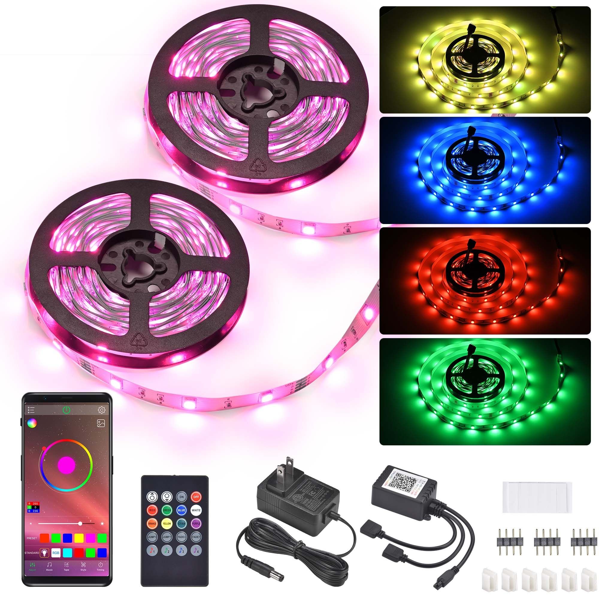 - User-friendly Timer Function - With timer mode, the light strip offers convenient settings on APP to turn on/off LED lights and change color at pre-set time, helps schedule gradually dimming before you enter sleep & wake you up gently in the morning; Up to 5 light strips can be controlled with your phone