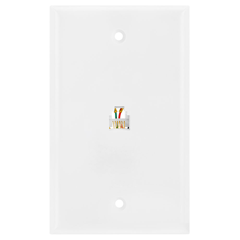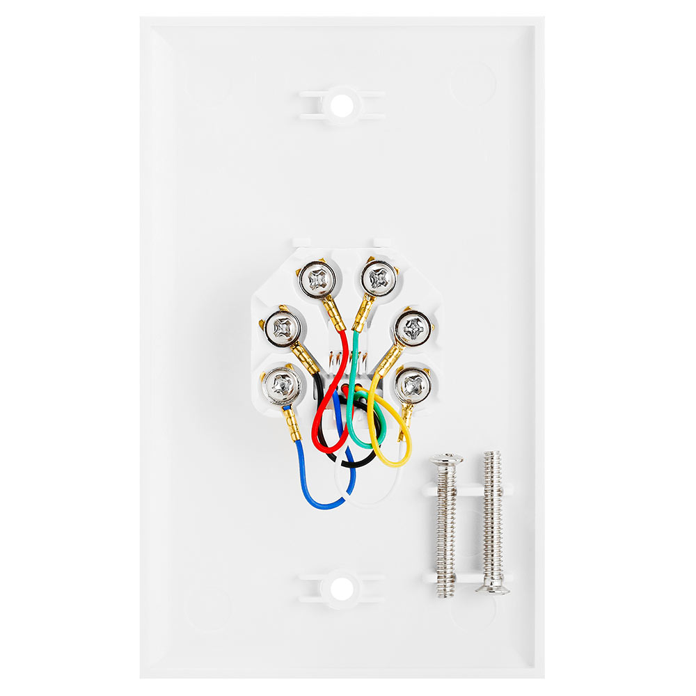 Wall Plate Jacks 6P6C Double White Telephone wall plate with RJ11/12 connector. Double Jack wall plate for connecting telephone lines Accept phone cords with RJ11/12 connectors with up to 6 pins Color coded Screw on type line connectors on back