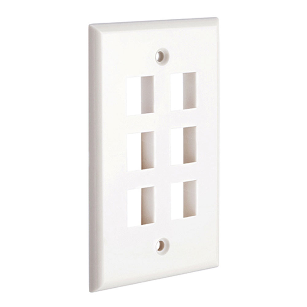 Keystone Jack Wall Plate with Six Port Standard Keystone - White