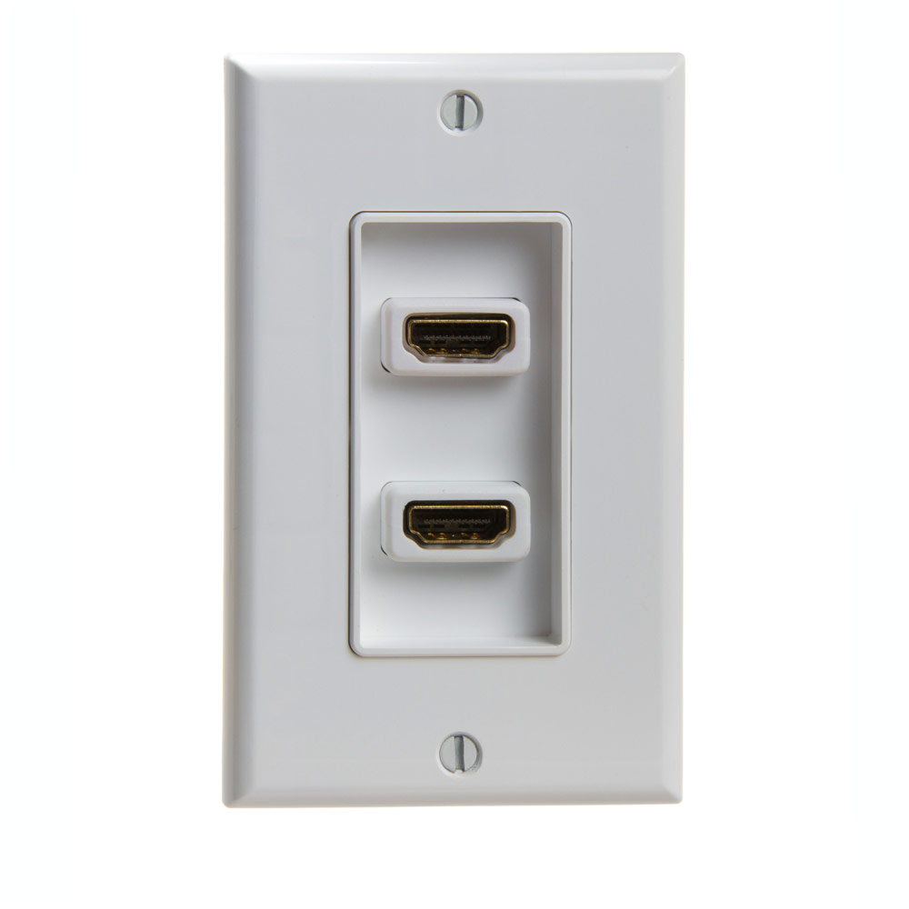2-Port female HDMI wall plate offers two in-wall 19-pin HDMI digital video receptacle for easy connections between a high-speed HDMI video output or standard HDMI video output and HDMI-equipped projectors, remote displays or home theaters.