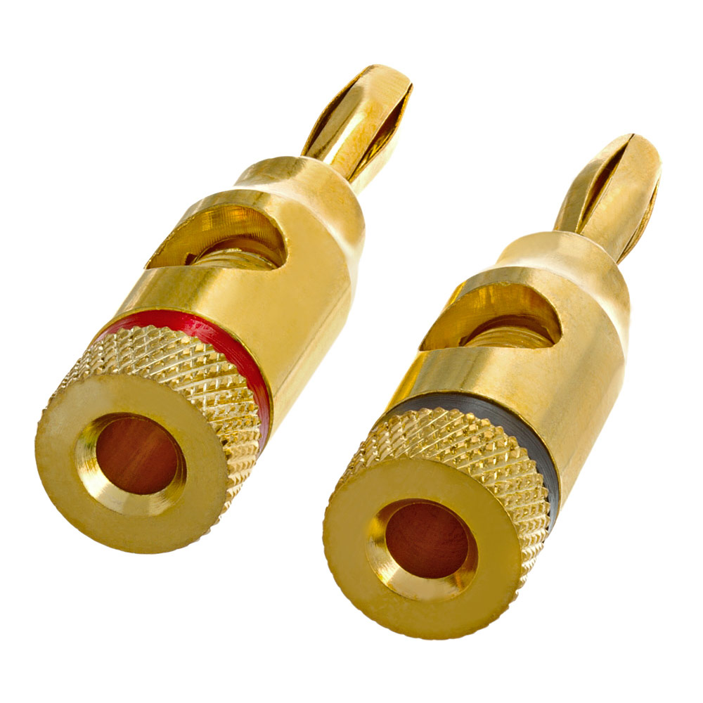 Cmple banana plugs types of plugs make speaker installation extremely easy. The plugs are made out of brass which is covered in a gold plated coating that ensures smooth connections.