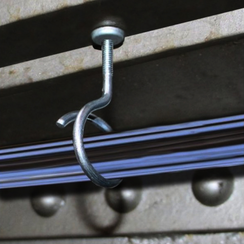 Bridle rings is a type of cable management. They are a fast and cost-effective way to support voice, data, and video cables from different structures. The bridle rings are designed to provide proper support for category cables, fiber optic cable, inner duct systems, and other cabling requirements. Very popular for non-continuous non-data sensitivity low voltage cable support. Allows for easy installation, access, and upgrade of existing cable runs without the use of conduit or trays.