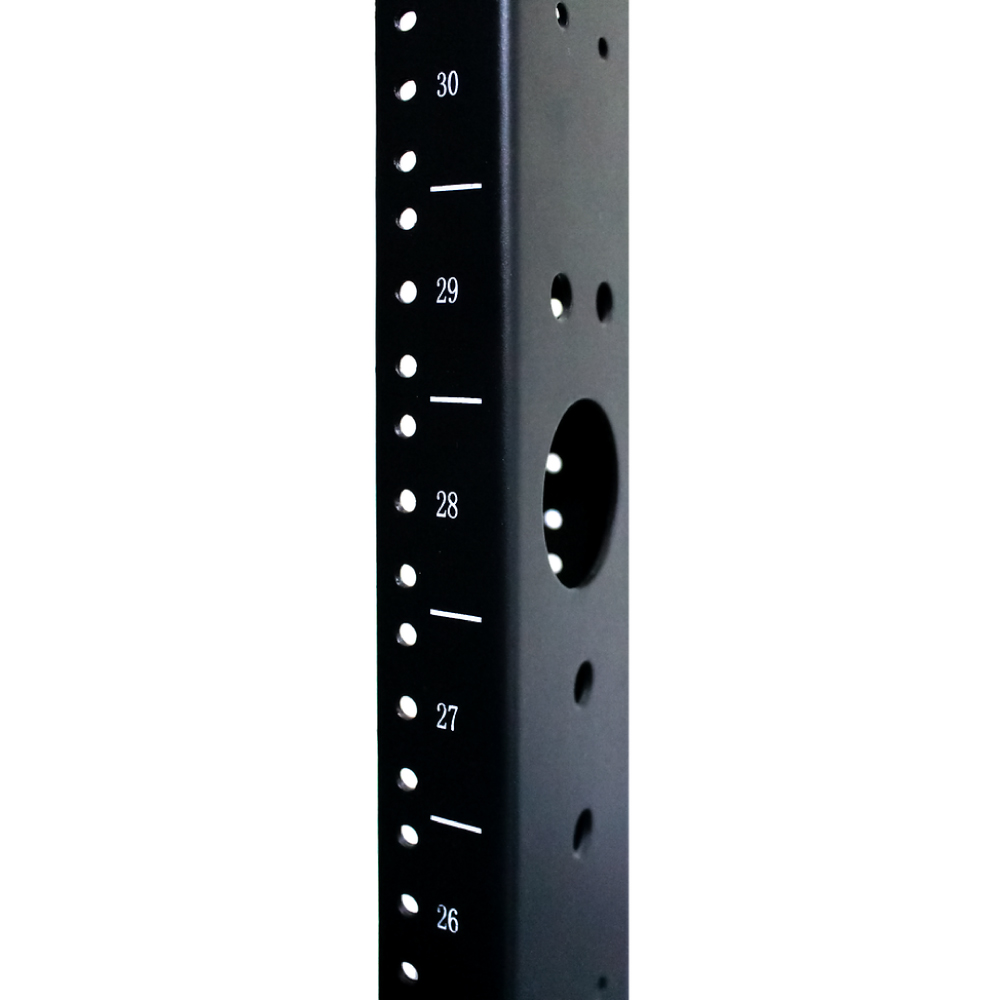 The 45U rack is compatible with all standard 19-inch equipment that supports 4-post mounting. The mounting depth is adjustable from 22 to 40 inches. Numbered mounting holes and button-hole mounting for vertical PDUs and cable managers - simplify equipment installation.