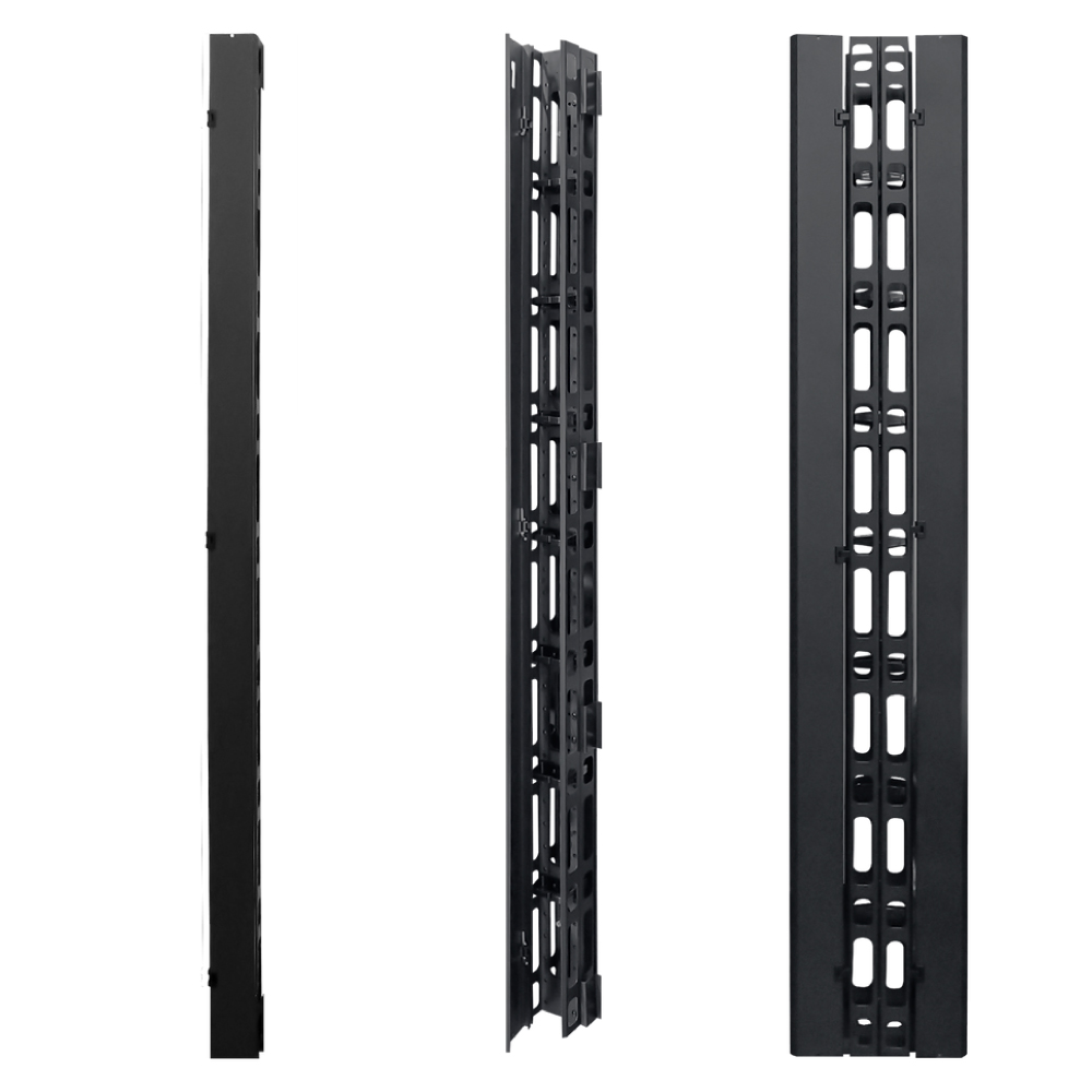 Wavenet – 74” High Double‐Sided Vertical Cable Manager with Hinged Cover for 45U or Larger 2‐Post and 4‐Post Racks, Metal – Black Wavenet – 74” High Double‐Sided Vertical Cable Manager with Hinged Cover for 45U or Larger 2‐Post and 4‐Post Racks, Metal – Black