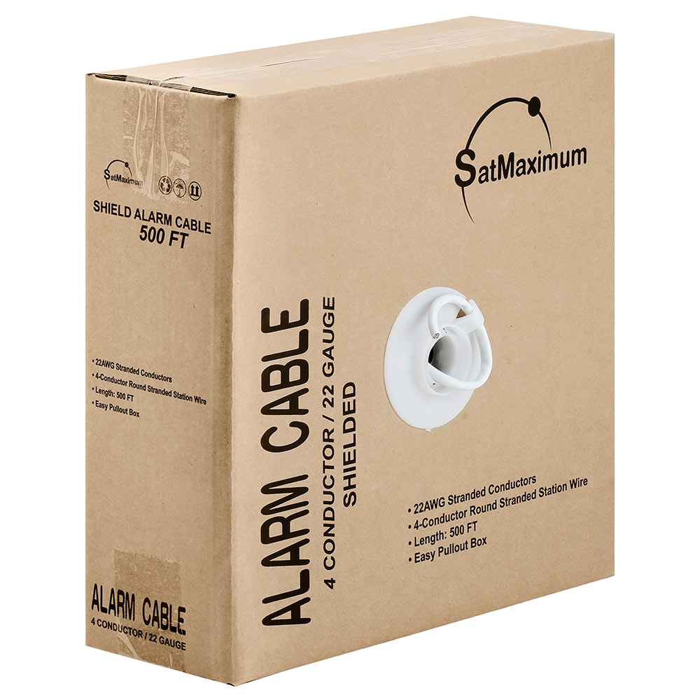 This product features a 500ft 22AWG 4 conductor round Security Alarm CCA cable with aluminum foil shielding. This cable is suitable for alarm security systems and other low voltage electrical hookup applications. You can use it to connect door and window sensors, motion detectors, keypads and other hardwired accessories to your alarm panels. The aluminum foil shielding provides protection from power frequency and radio frequency interference, reducing the number of false alarms being generated. The cable comes in a pull out box making it easy to use.
