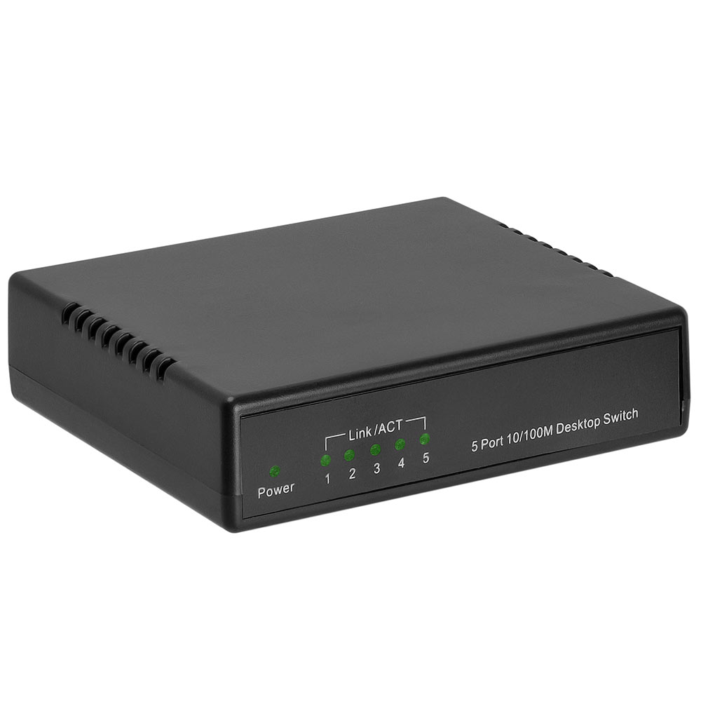5-Port 10/100 Mbps Fast Ethernet Network Switch RJ45 Ethernet Hub, Plug-and-Play, Fanless Quiet Design 5-Port 10/100 Mbps Fast Ethernet Network Switch RJ45 Ethernet Hub, Plug-and-Play, Fanless Quiet Design