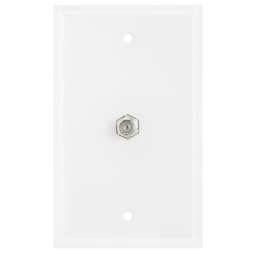 Single Coax Wallplate connects 75 ohm cable through a wall. TV, DVD, VCR, SAT, CBL.